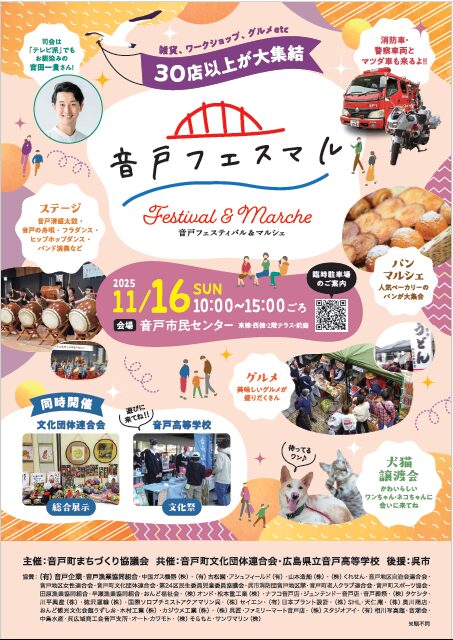 新着情報 土曜の朝市が開催されます 9月2日(土)   タコ天、唐揚げ、フライドポテト、うどん、鯛飯、音戸パン、新鮮野菜、果物、魚などを販売する「土曜の朝市」が開催されます。 豪華賞品が当たる抽選会も行いますの […]